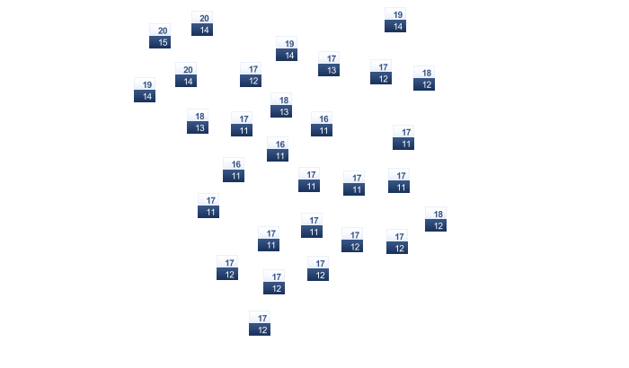 | 21 | 25 | 28 | 32 | 37 | 43 | 45 | 44 | 40 | 33 | 26 | 21 |