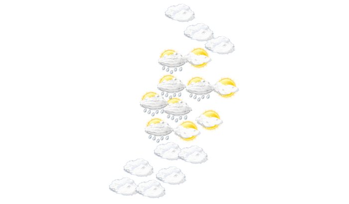 In Cheria ist es am Morgen wolkig und die Temperatur liegt bei 1°C. Darüber hinaus gibt es am Nachmittag und am Abend Regen bei Werten von 5 bis zu 7°C. Nachts ist der Himmel bedeckt bei Tiefsttemperaturen von 7°C. Mit Geschwindigkeiten von 9 bis 31 km/h weht der Wind aus südwestlicher Richtung. Böen können Geschwindigkeiten zwischen 28 und 66 km/h erreichen.