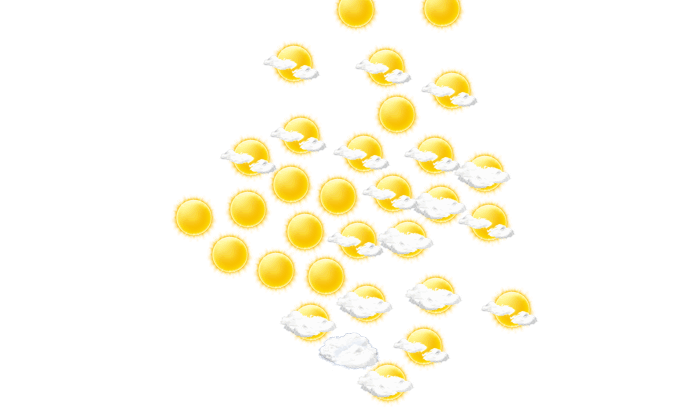 In Bir Mourad Raïs scheint den ganzen Tag die Sonne bei Werten von 14 bis zu 22°C. Nachts ist es klar bei Tiefsttemperaturen von 15°C. Mit Böen zwischen 8 und 26 km/h ist zu rechnen.