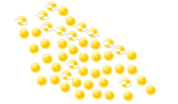 In Topa gibt es am Morgen überwiegend blauen Himmel mit vereinzelten Wolken bei Temperaturen von 21°C. Darüber hinaus scheint von mittags bis zum Abend hin die Sonne bei Werten von 24 bis zu 36°C. Nachts ist es klar und die Temperatur fällt auf 19°C.