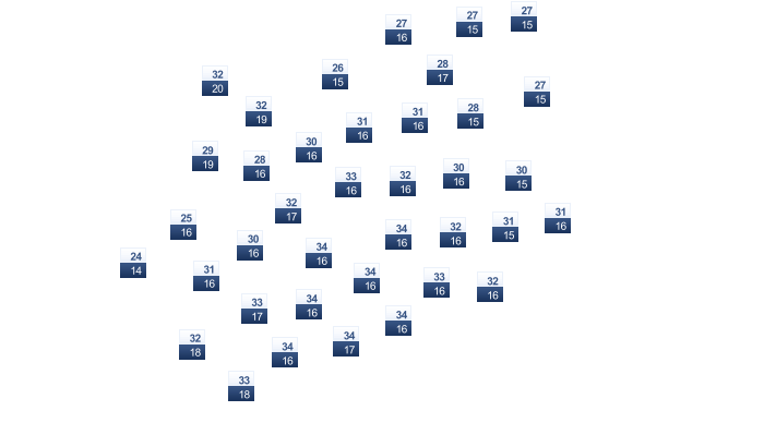 | 30 | 30 | 31 | 30 | 29 | 27 | 25 | 25 | 27 | 28 | 29 | 29 |