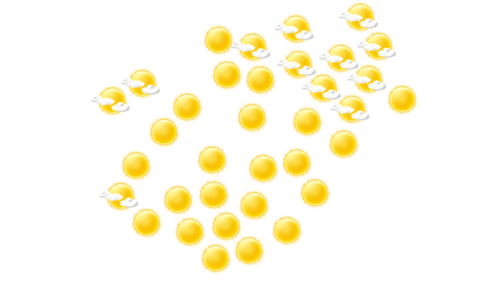 In Sumbe bleibt am Morgen die Wolkendecke geschlossen bei Werten von 21°C. Später wird die Sonne von einzelnen Wolken verdeckt bei Höchstwerten von 23°C. Abends ist es in Sumbe wolkenlos bei Werten von 21°C. Nachts ziehen Wolkenfelder durch bei einer Temperatur von 22°C.