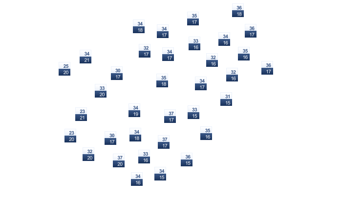 30 | 30 | 31 | 30 | 29 | 27 | 25 | 25 | 27 | 28 | 29 | 29 |