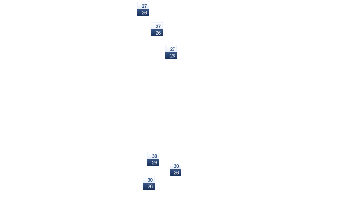In Glanvilles verdecken den ganzen Tag einzelne Wolken die Sonne und die Temperaturen liegen zwischen 26 und 30°C. Nachts bilden sich vereinzelt Wolken und die Werte gehen auf 25°C zurück. Mit Böen zwischen 26 und 32 km/h ist zu rechnen.