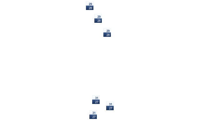 In Glanvilles fällt morgens Regen und die Temperatur liegt bei 27°C. Später bilden sich leichte Wolken und die Höchstwerte liegen bei 31°C. Am Abend gibt es in Glanvilles keine Wolken bei Temperaturen von 27°C. In der Nacht verdecken einzelne Wolken den Himmel bei einer Temperatur von 27°C. Mit Böen zwischen 26 und 32 km/h ist zu rechnen.
