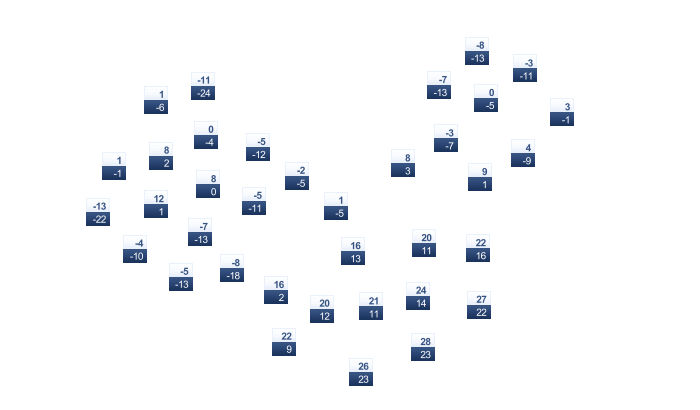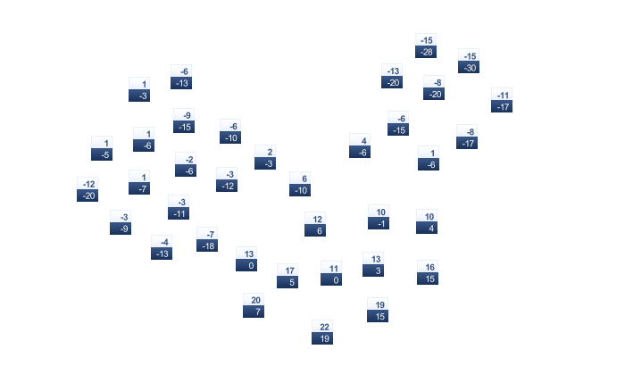 | -9 | -7 | -1 | 7 | 13 | 18 | 22 | 20 | 14 | 7 | 0 | -7 |
