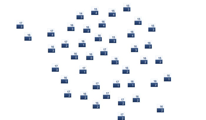 | 3 | 5 | 9 | 15 | 17 | 22 | 24 | 24 | 19 | 14 | 8 | 5 |