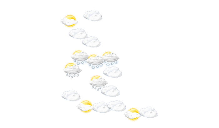 In Haines Junction gibt es am Morgen eine Mischung aus Sonne und Wolken und die Temperatur liegt bei 1°C. Darüber hinaus ziehen vom Nachmittag bis abends Wolkenfelder durch und die Temperaturen liegen zwischen 3 und 5 Grad. Nachts ist der Himmel bedeckt bei Tiefsttemperaturen von 3°C.