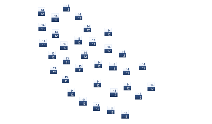 | 12 | 12 | 13 | 15 | 17 | 21 | 24 | 25 | 23 | 20 | 17 | 14 |