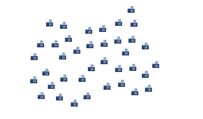 | 21 | 23 | 25 | 26 | 26 | 25 | 25 | 25 | 25 | 24 | 23 | 21 |