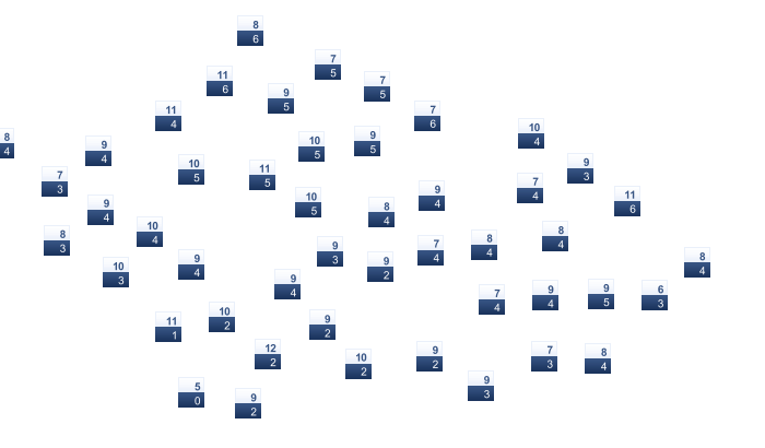 | 1 | 3 | 7 | 13 | 16 | 20 | 22 | 23 | 17 | 12 | 7 | 3 |