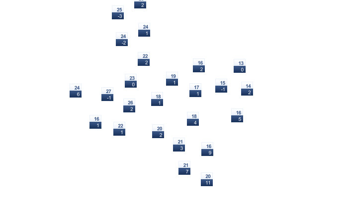| 8 | 11 | 15 | 21 | 27 | 32 | 33 | 32 | 29 | 22 | 14 | 9 |