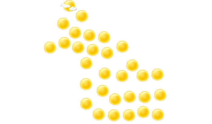 | 31 | 30 | 26 | 22 | 17 | 13 | 13 | 15 | 18 | 22 | 26 | 30 |