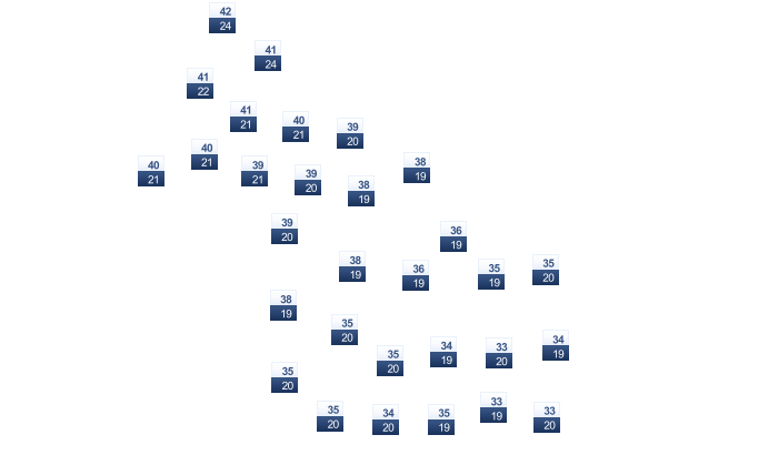 | 17 | 16 | 14 | 10 | 7 | 4 | 4 | 4 | 7 | 9 | 12 | 15 |