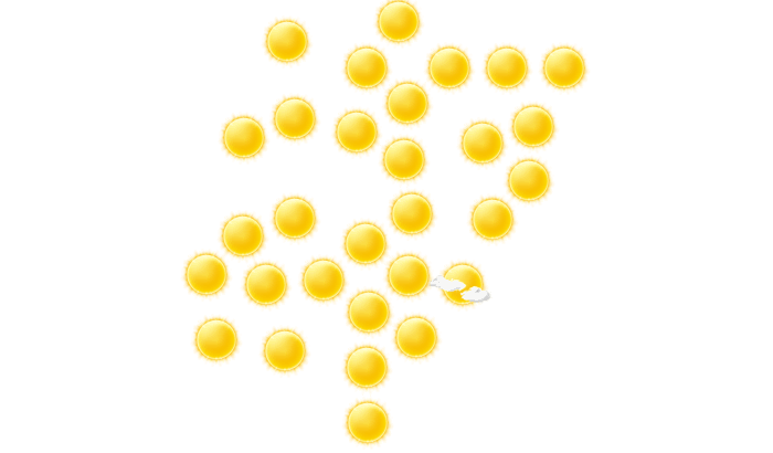 | 31 | 30 | 26 | 22 | 17 | 13 | 13 | 15 | 18 | 22 | 26 | 30 |