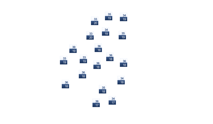 | 31 | 30 | 26 | 22 | 17 | 13 | 13 | 15 | 18 | 22 | 26 | 30 |
