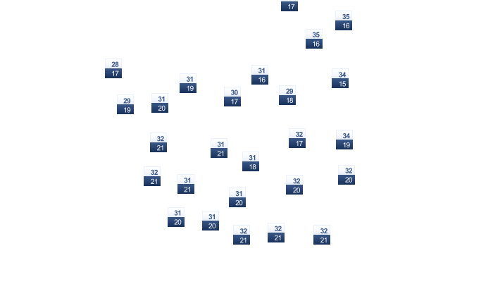 | 31 | 30 | 26 | 22 | 17 | 13 | 13 | 15 | 18 | 22 | 26 | 30 |