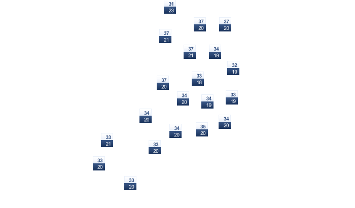 | 31 | 30 | 26 | 22 | 17 | 13 | 13 | 15 | 18 | 22 | 26 | 30 |