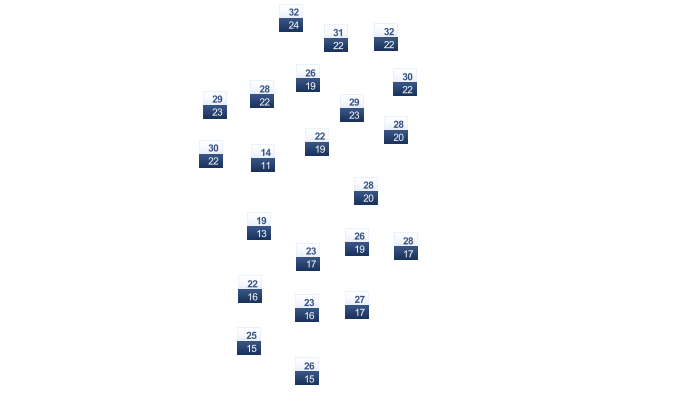 | 31 | 30 | 26 | 22 | 17 | 13 | 13 | 15 | 18 | 22 | 26 | 30 |