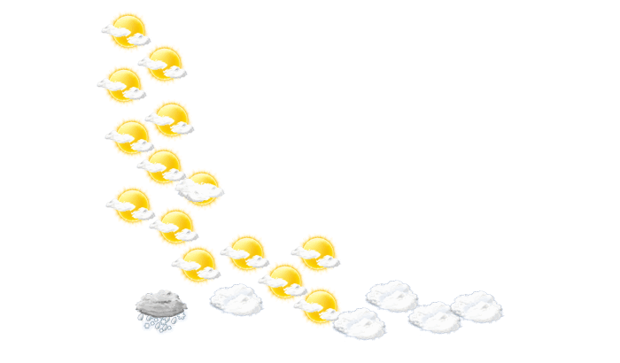 | 31 | 30 | 26 | 22 | 17 | 13 | 13 | 15 | 18 | 22 | 26 | 30 |