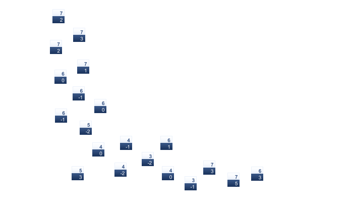 | 17 | 16 | 14 | 10 | 7 | 4 | 4 | 4 | 7 | 9 | 12 | 15 |