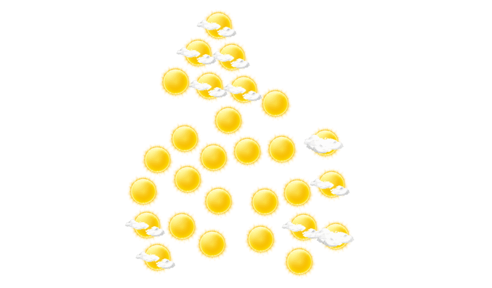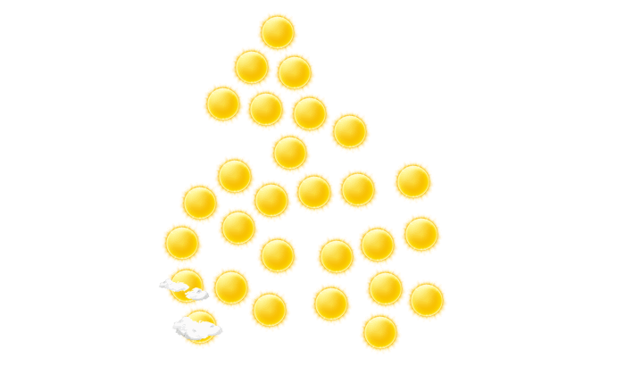| 31 | 30 | 26 | 22 | 17 | 13 | 13 | 15 | 18 | 22 | 26 | 30 |