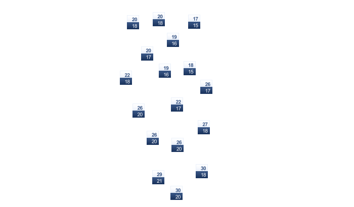 | 31 | 30 | 26 | 22 | 17 | 13 | 13 | 15 | 18 | 22 | 26 | 30 |