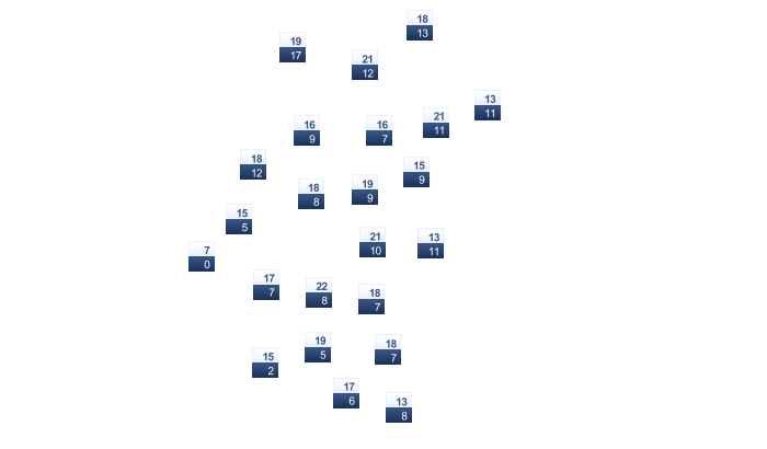 | 17 | 16 | 14 | 10 | 7 | 4 | 4 | 4 | 7 | 9 | 12 | 15 |