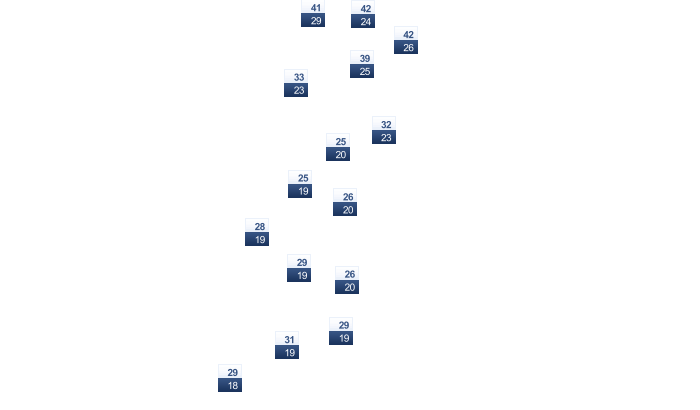 | 31 | 30 | 26 | 22 | 17 | 13 | 13 | 15 | 18 | 22 | 26 | 30 |