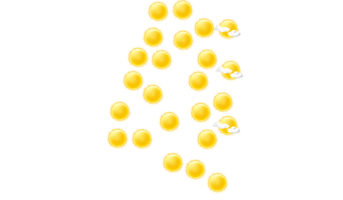 In Termas de Río Hondo ist es den ganzen Tag sonnig bei Werten von 22 bis zu 36°C. In der Nacht gibt es einen wolkenlosen Himmel bei Tiefsttemperaturen von 23°C.
