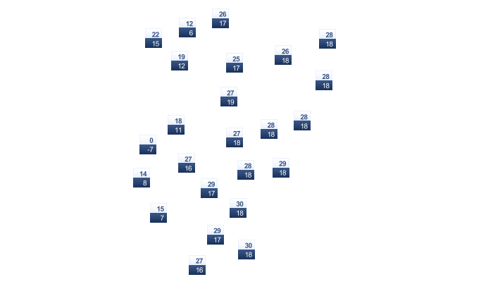 | 31 | 30 | 26 | 22 | 17 | 13 | 13 | 15 | 18 | 22 | 26 | 30 |