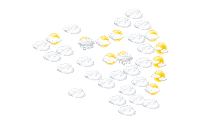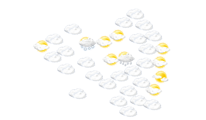 In Corat sollte von Tagesbeginn bis zum Nachmittag der Schirm nicht vergessen werden, da es regnet bei Temperaturen von 6 bis 8°C. Am Abend ist es in Corat bedeckt und die Temperatur liegt bei 6°C. Nachts ist es überwiegend dicht bewölkt bei Tiefstwerten von 2°C. Mit Böen zwischen 10 und 21 km/h ist zu rechnen.