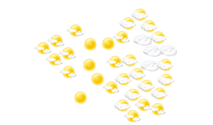 In Danalar gibt es tagsüber ungestörten Sonnenschein bei Werten von 4 bis zu 14°C. Nachts ist es überwiegend dicht bewölkt bei Tiefsttemperaturen von 5°C. Böen können Geschwindigkeiten zwischen 9 und 20 km/h erreichen.
