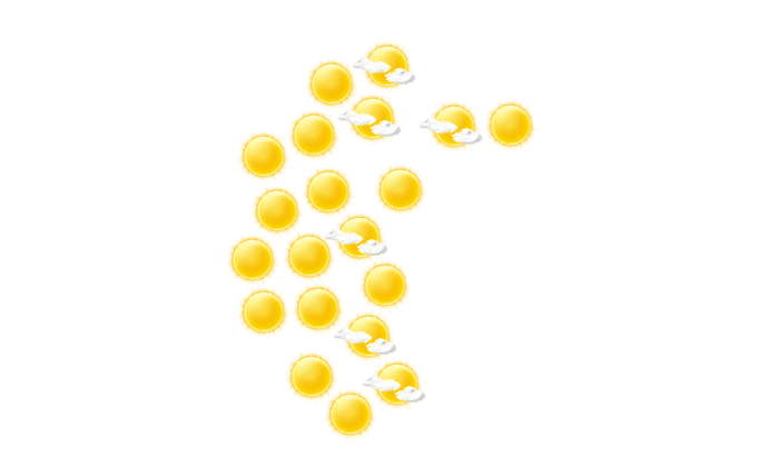 | 29 | 30 | 27 | 23 | 19 | 16 | 16 | 17 | 19 | 23 | 26 | 28 |