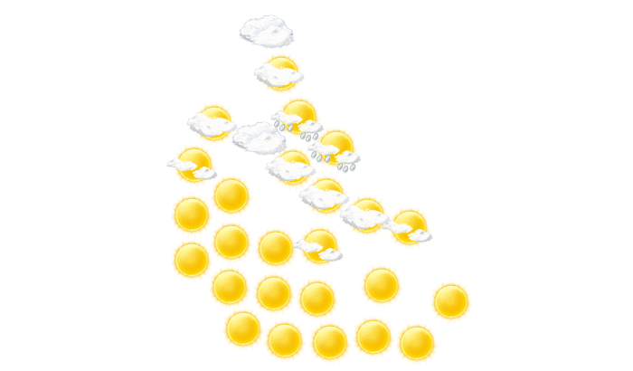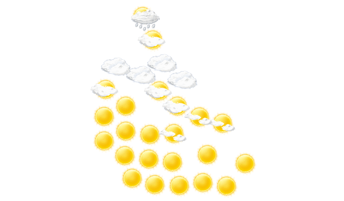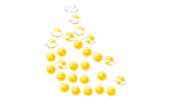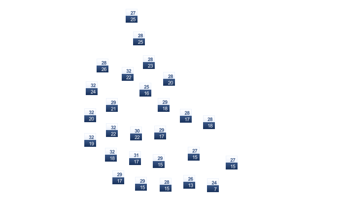 | 29 | 30 | 27 | 23 | 19 | 16 | 16 | 17 | 19 | 23 | 26 | 28 |