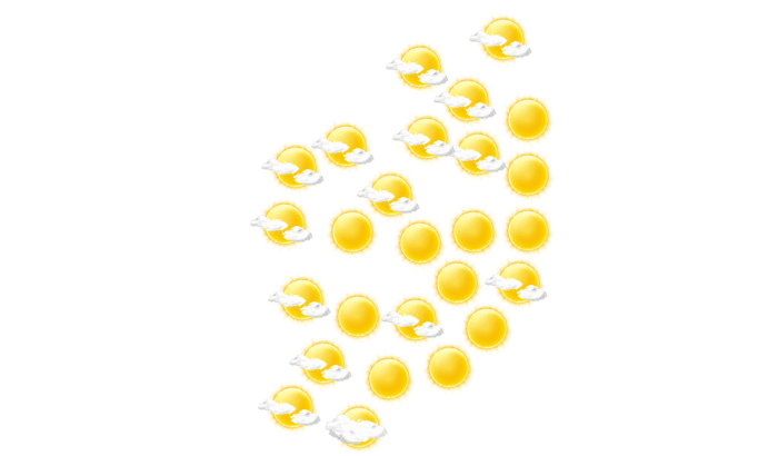 | 29 | 30 | 27 | 23 | 19 | 16 | 16 | 17 | 19 | 23 | 26 | 28 |