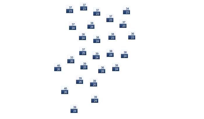 | 11 | 13 | 17 | 22 | 24 | 25 | 26 | 26 | 26 | 23 | 17 | 13 |