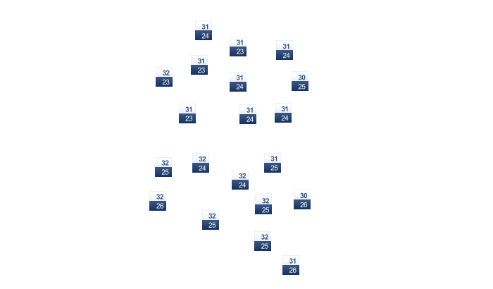 24 | 27 | 33 | 35 | 34 | 32 | 32 | 32 | 32 | 31 | 28 | 25 |