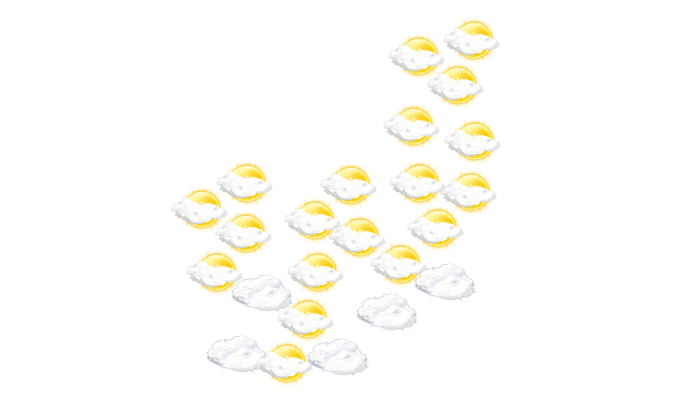 In Waukawysk ist es vormittags und auch am Nachmittag bewölkt, die Sonne zeigt sich nur vereinzelt bei Temperaturen von -12 bis -8°C. Am Abend bleibt in Waukawysk die Wolkendecke geschlossen bei Werten von -10 bis zu -9°C. Nachts ist es bedeckt bei Tiefsttemperaturen von -11°C. Böen können Geschwindigkeiten zwischen 27 und 30 km/h erreichen.