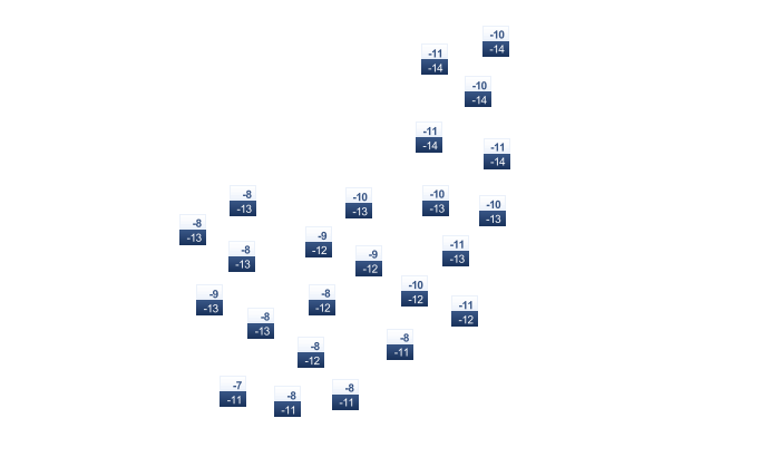 | -5 | -4 | 1 | 10 | 18 | 22 | 23 | 22 | 17 | 10 | 3 | -2 |