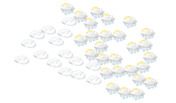 In Nawapolazk überwiegt am Morgen dichte Bewölkung aber es bleibt trocken bei Werten von -15°C. Im weiteren Tagesverlauf gibt es mittags und auch abends Schnee bei Temperaturen von -10 bis -8°C. Nachts überwiegt dichte Bewölkung, aber es bleibt trocken bei Werten von -12°C. Böen können Geschwindigkeiten zwischen 14 und 20 km/h erreichen.