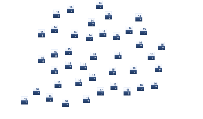 | 5 | 6 | 10 | 13 | 17 | 20 | 22 | 22 | 19 | 14 | 9 | 7 |