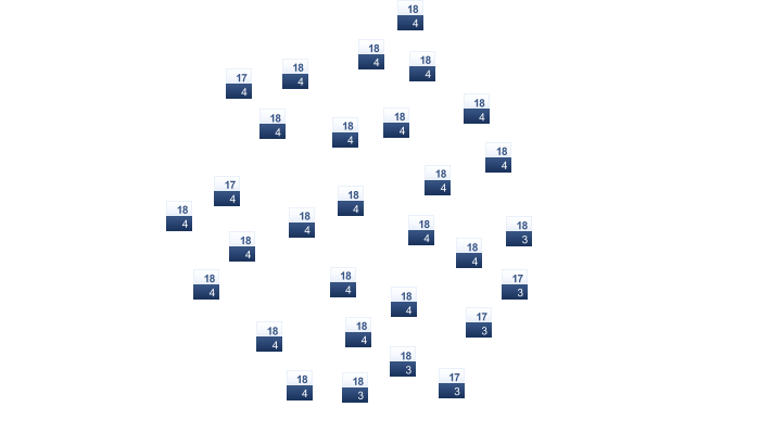 | 1 | 0 | 3 | 5 | 8 | 12 | 13 | 13 | 11 | 7 | 4 | 2 |