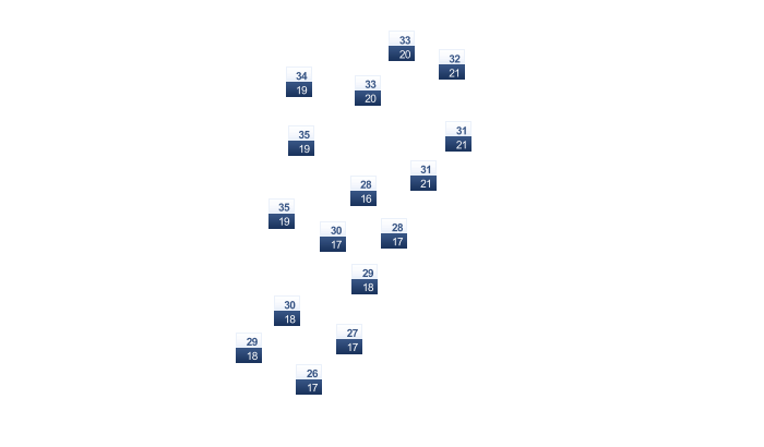 | 28 | 28 | 30 | 31 | 31 | 31 | 31 | 32 | 31 | 30 | 29 | 27 |