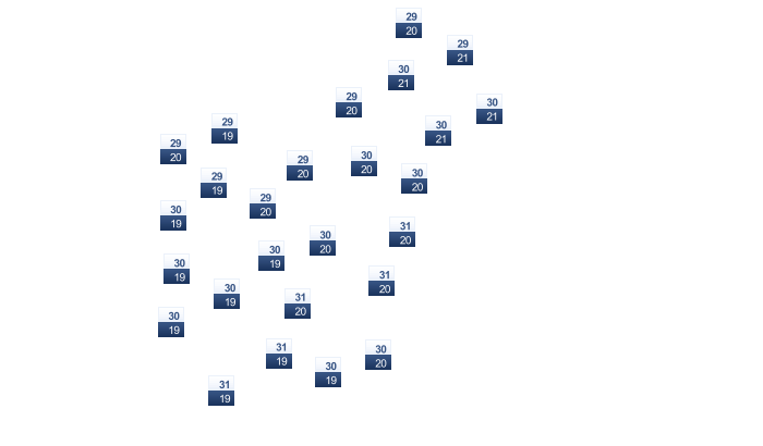 | 28 | 28 | 30 | 31 | 31 | 31 | 31 | 32 | 31 | 30 | 29 | 27 |