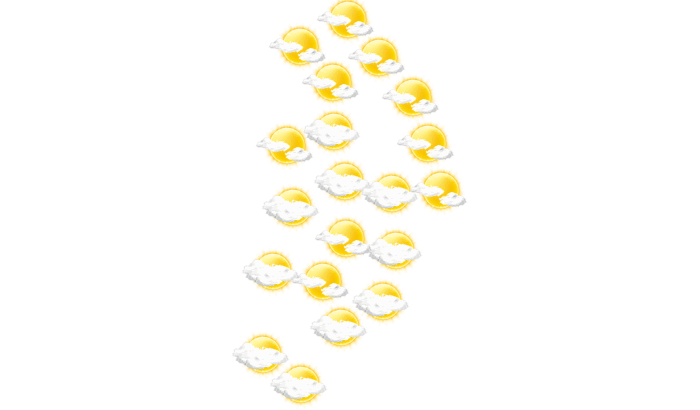 In Malanville kommt es morgens zu einem Mix aus Sonne und Wolken bei Temperaturen von 27°C. Des Weiteren bilden sich vom Nachmittag bis abends vereinzelt Wolken bei Temperaturen von 33 bis 42°C. In der Nacht gibt es einen wolkenlosen Himmel bei Werten von 27°C.