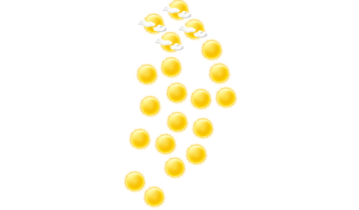 In Malanville gibt es am Morgen keine Wolken, die Sonne scheint und die Temperatur liegt bei 21°C. Im Laufe des Mittags zeigt sich die Sonne zwischen einzelnen Wolken und die Temperatur steigt auf 37°C. Am Abend gibt es in Malanville nur selten Lücken in der Wolkendecke bei Temperaturen von 27 bis 30°C. In der Nacht bedecken einzelne Wolken den Himmel bei Tiefstwerten von 21°C.