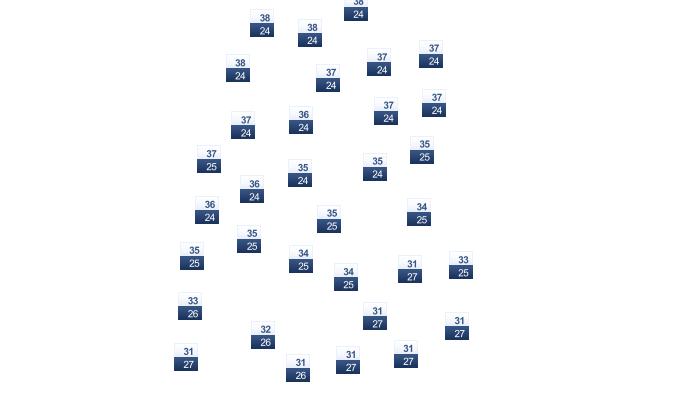| 34 | 36 | 35 | 34 | 32 | 31 | 29 | 29 | 30 | 32 | 34 | 34 |