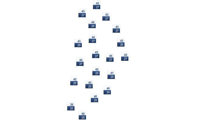 | 34 | 36 | 35 | 34 | 32 | 31 | 29 | 29 | 30 | 32 | 34 | 34 |