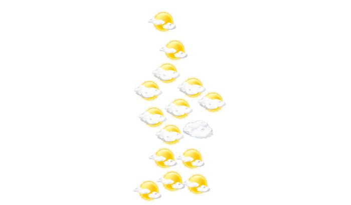In Dogbo sind morgens Teile des Himmels mit Wolken bedeckt, die Sonne ist aber zwischendurch sichtbar und die Temperatur liegt bei 26°C. Im weiteren Tagesverlauf bleibt die Wolkendecke geschlossen und die Temperatur steigt auf 36°C. Am Abend stören in Dogbo nur einzelne Wolken den sonst blauen Himmel bei Temperaturen von 27 bis 30°C. Nachts gibt es nur selten Lücken in der Wolkendecke bei einer Temperatur von 27°C.